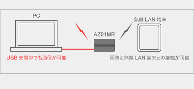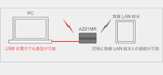 また、AZ01MRはUSBアダプターとして使用している最中にもwifiルーターとして機能する。LinuxPCにUSB接続しつつ別の機器からwifi接続することが可能なのだ。このあたりの柔軟性の高さは、他のモバイルルーターより一歩抜きん出ているだろう。