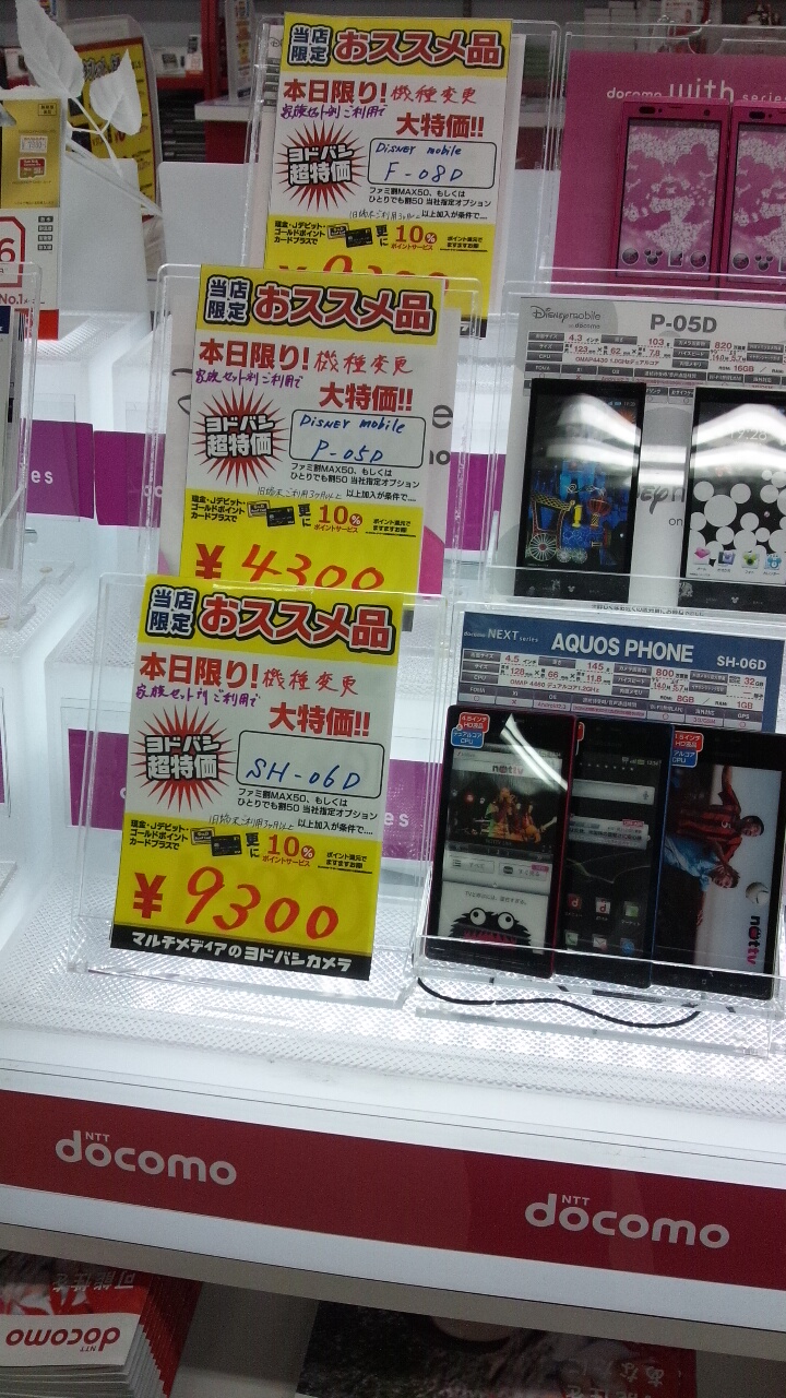 SH-06D機種変更一括9300円、P-05D機種変更一括4300円