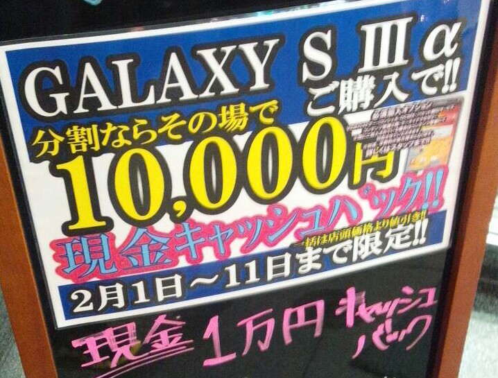 Galaxy S3 α SC-03Eが10000円キャッシュバック